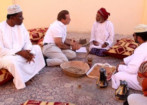 Gary learns about frankincense from Musallam, one of the last remaining caravaners in Salalah, Oman.