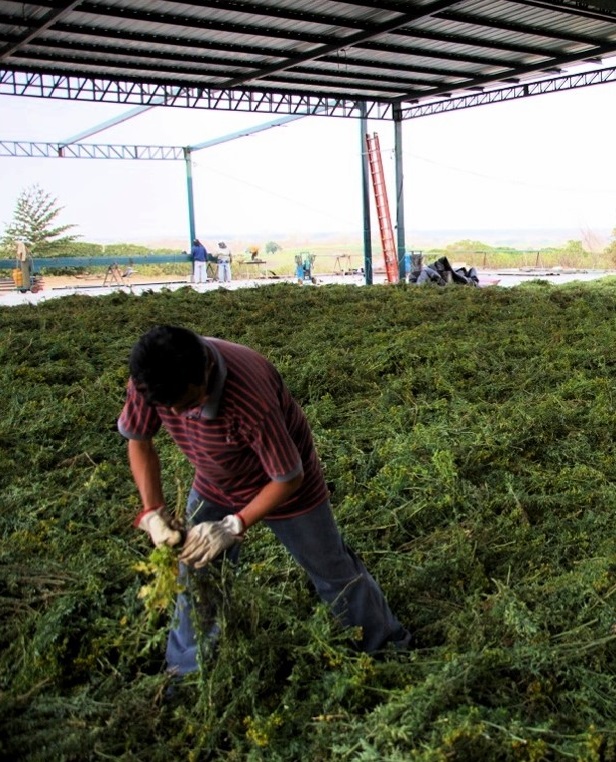 In the meantime, I had to know where and when the oil was there. So we’d cut Dorado Azul and then distill it and cut and distill. We did this from the moment I saw it starting to develop the pre-bud all the way through the budding stage, flowering stage, post-flowering stage, seed stage, and then final seed stage to where it drops on the ground.