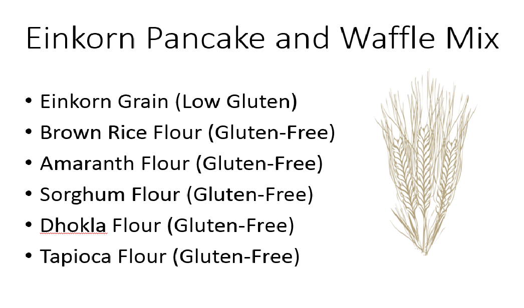 This slide is worth repeating! Gary’s True Grit mix is simply brilliant with low-gluten einkorn flour and five NO-gluten flours!