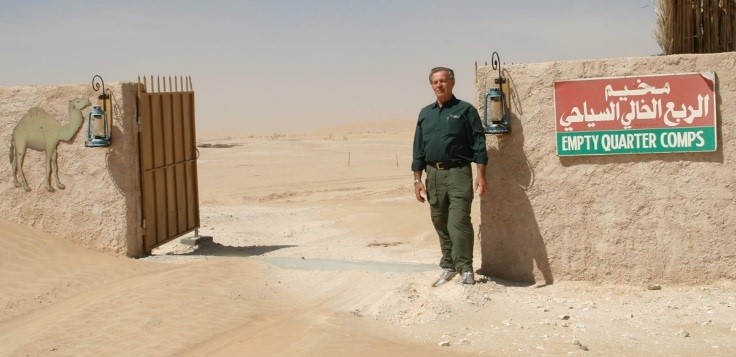 Gary at the camp in the Empty Quarter which stretches over 250,000 miles covering parts of Oman, Yemen, Saudi Arabia, and the United Arab Emirates.