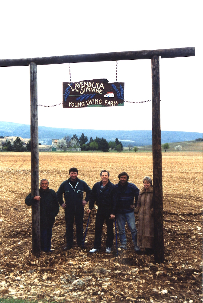 Celebrating having a new sign at the Young Living Lavender farm in the Simiane-la-Rotonde Valley in Provence, France, in 2003.