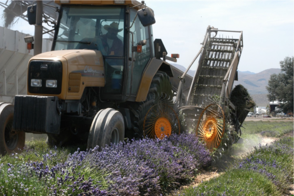 To grow lavender, you must have a greenhouse to germinate the seed and create starts for spring planting. You must also have a planting machine, or you have to plant by hand. After you plant the starts, you must wait three years before the first harvest. When you do finally harvest, you can’t do it with a wheat combine, hay swather, potato digger, or corn harvester, and no equipment is manufactured in the USA for planting or harvesting lavender specifically. That’s why I built my own planting machine and engineered and built two lavender harvesters.