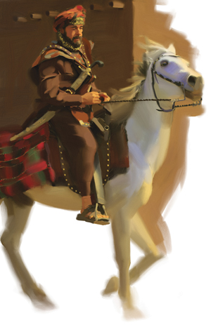 After reading about the story of Shutran’s descendant who distilled biblical oils at Ein Gedi, his pondering takes us back to the beginning of The One Gift’s tale of the fearless Bedouin caravan commander named Shutran. Illustration copyright © YL Wisdom 2010.